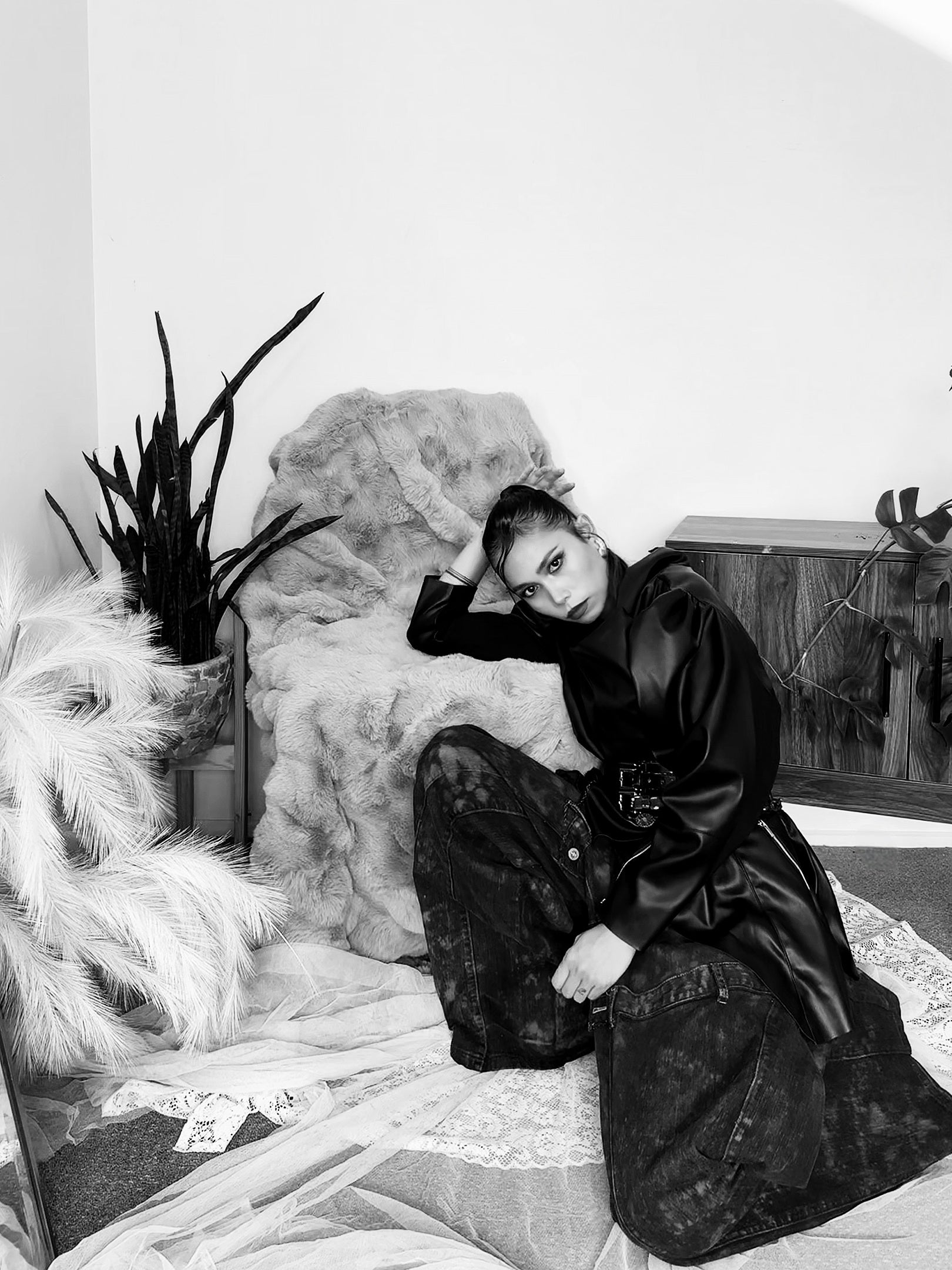 In displaying this Collection, it shows you unusual layering, conceptual designs and textures. All materials are 100% made from upcycled fabrics.